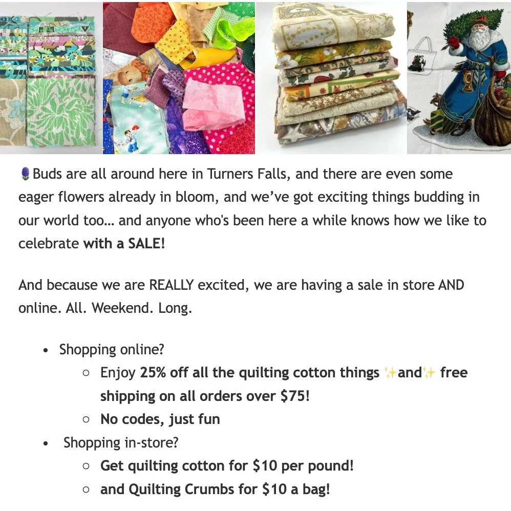 Our mission is to make sewing more accessible using the abundance around us. This means things like skipping excessive (and expensive) packaging materials in favor of reusing what we have on hand.