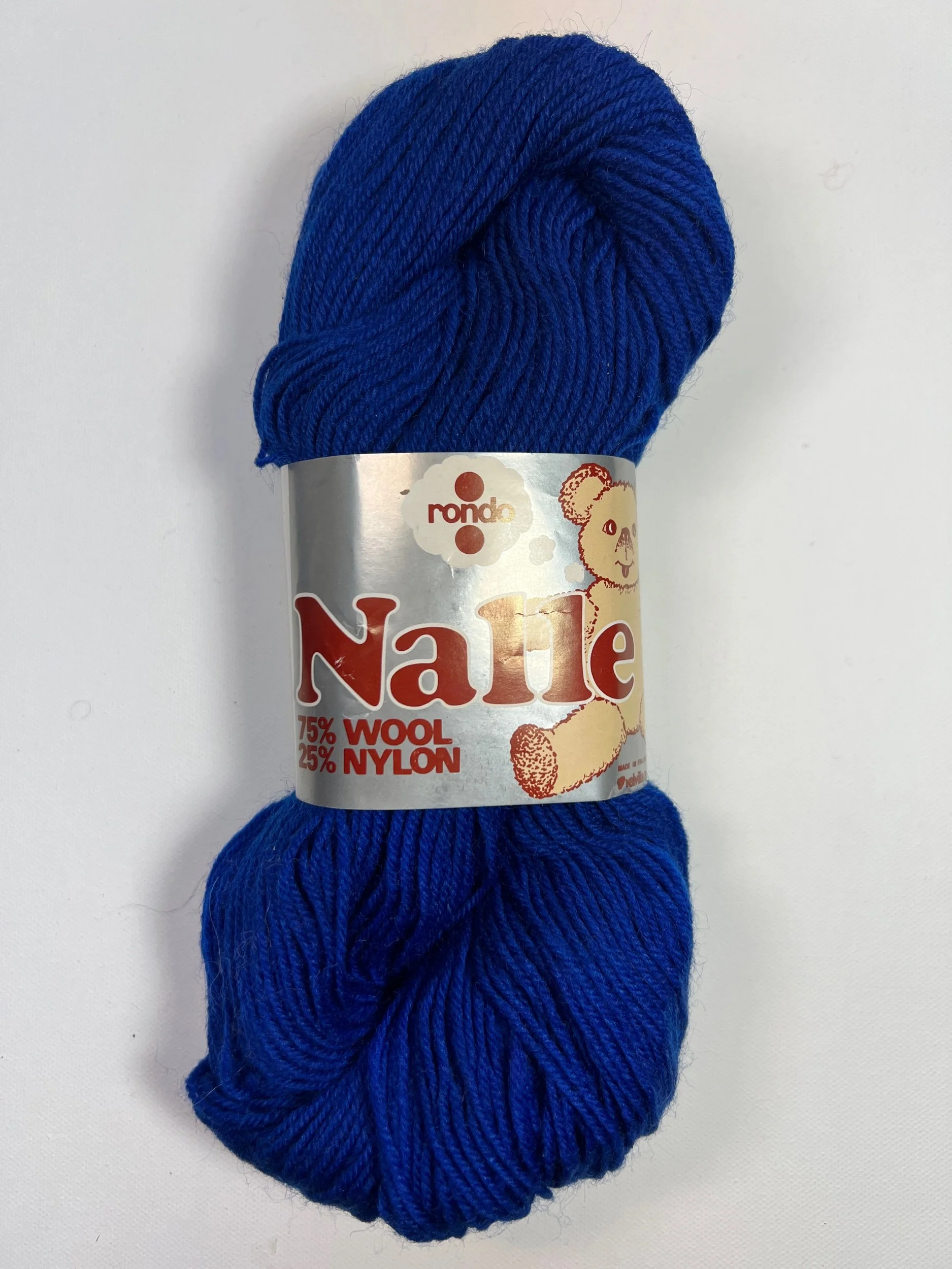 Beautiful sock yarn with wool for comfort and nylon for strength, one skein is likely enough for one average pair of socks. 75% wool, 25% nylon. 284 yards, #4 needle, 13 sts = 2", 8 rows = 1". 50% of sales go towards The Loose Ends Project (learn more at www.looseends.org). Imported from Finland and beautifully stored for years, this yarn come from Pirjo (PEER-EE-OH), who had shops in the DC metro area. She retired, and she decided to donate her stash to the Loose Ends Project, who contacted us and asked for a collab. We are honored to sell this yarn to support their work, especially as their main funding source, Joann's, is no longer with us.