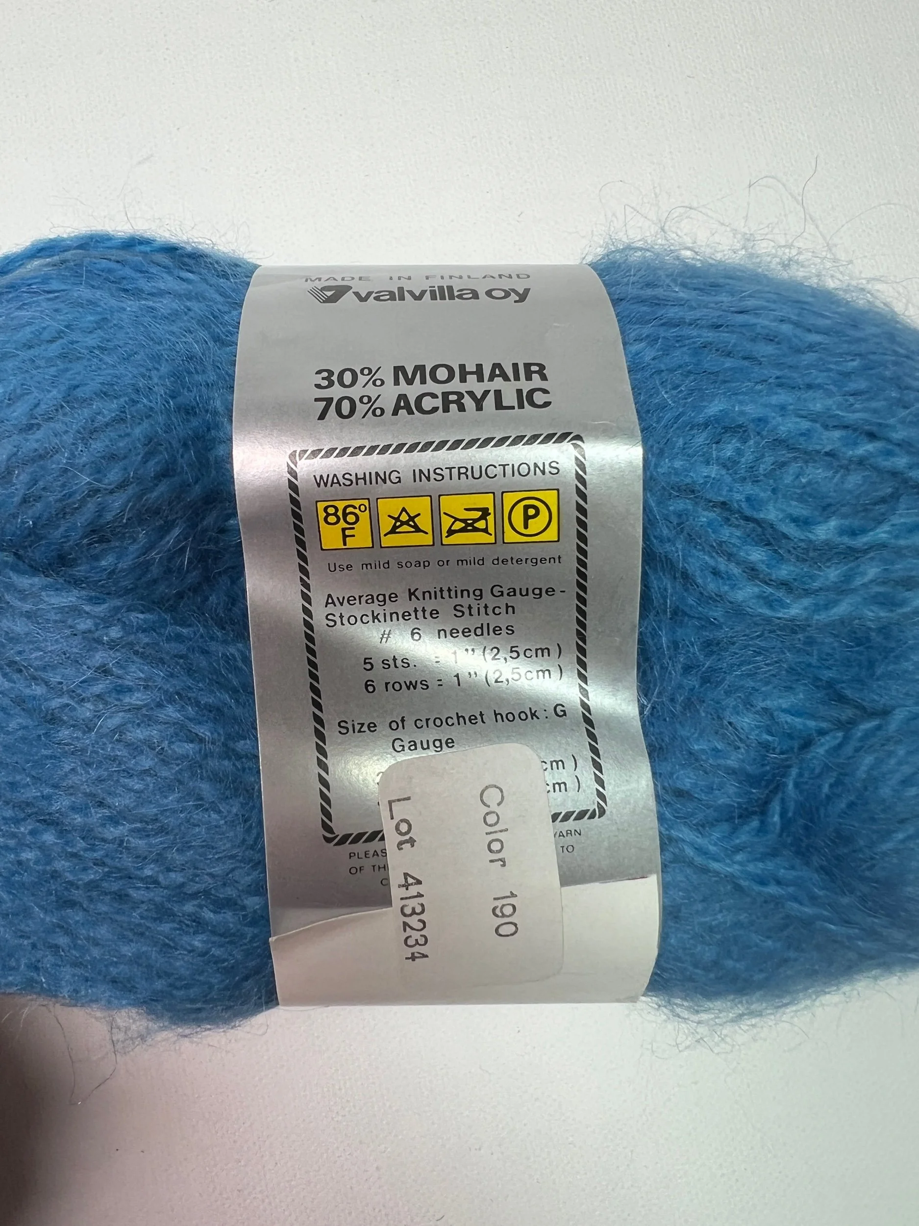 DK superwash in all of the colors of the crayon box! You can't go wrong with this everyday use, high quality standard. #4 needle, 6 sts = 1", 8 rows = 1", 101 yards. 50% of sales go towards The Loose Ends Project (learn more at www.looseends.org). Imported from Finland and beautifully stored for years, this yarn come from Pirjo (PEER-EE-OH), who had shops in the DC metro area. She retired, and she decided to donate her stash to the Loose Ends Project, who contacted us and asked for a collab. We are honored to sell this yarn to support their work, especially as their main funding source, Joann's, is no longer with us.