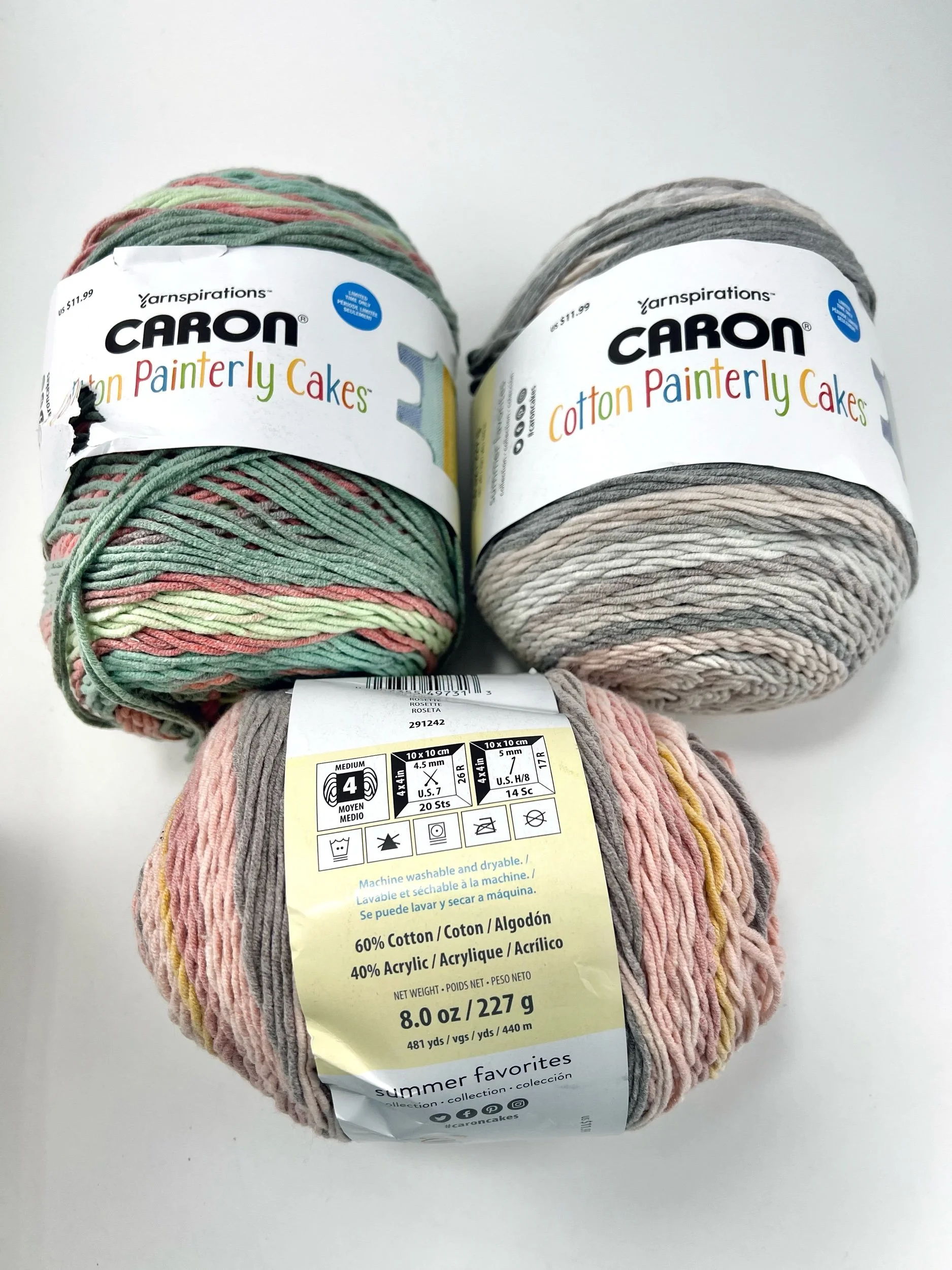 3 Skeins Yarnspirations Caron Cotton Painterly Cakes Yarn