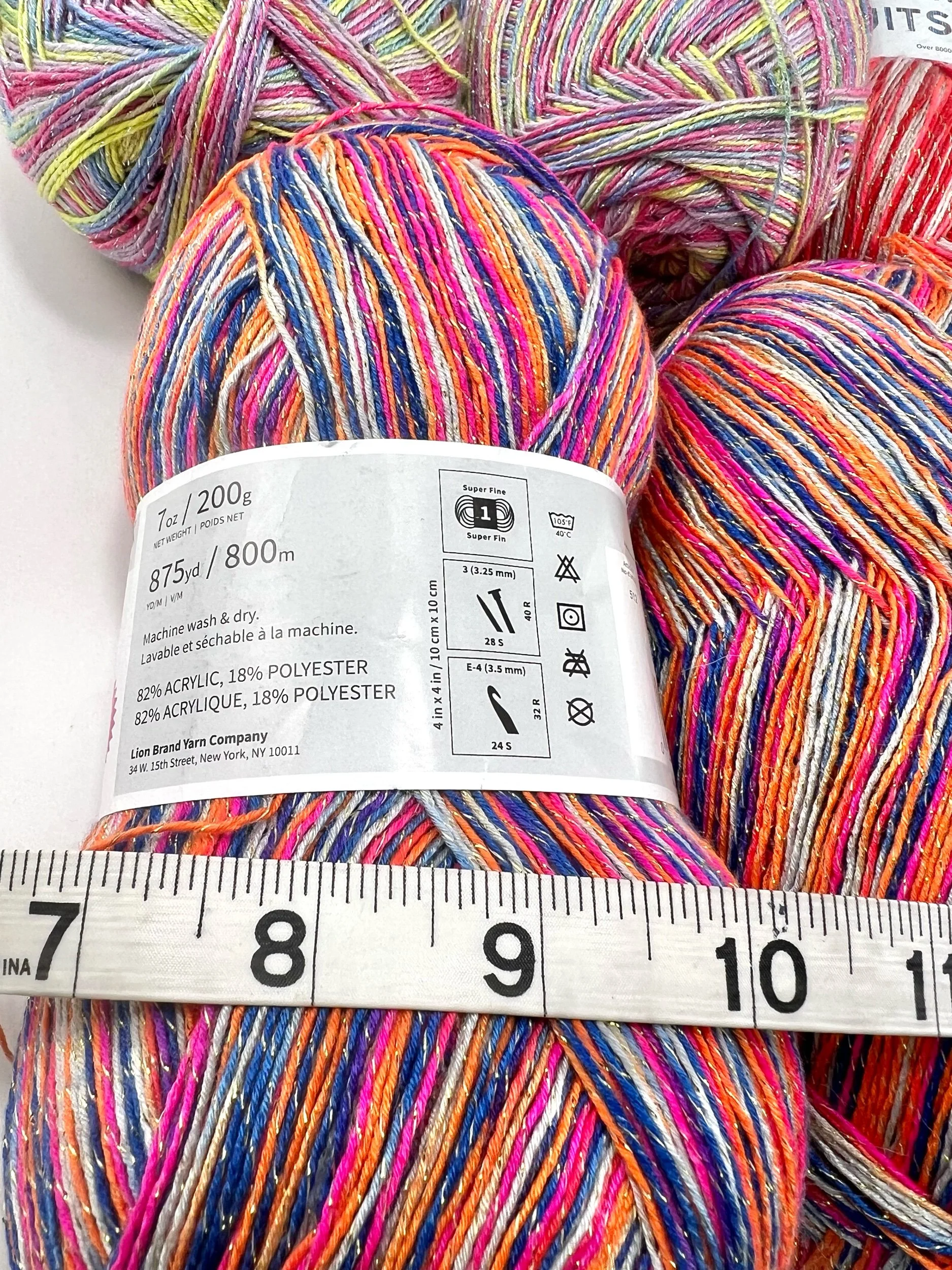 200 gram skeins, 82% acrylic, 18% polyester