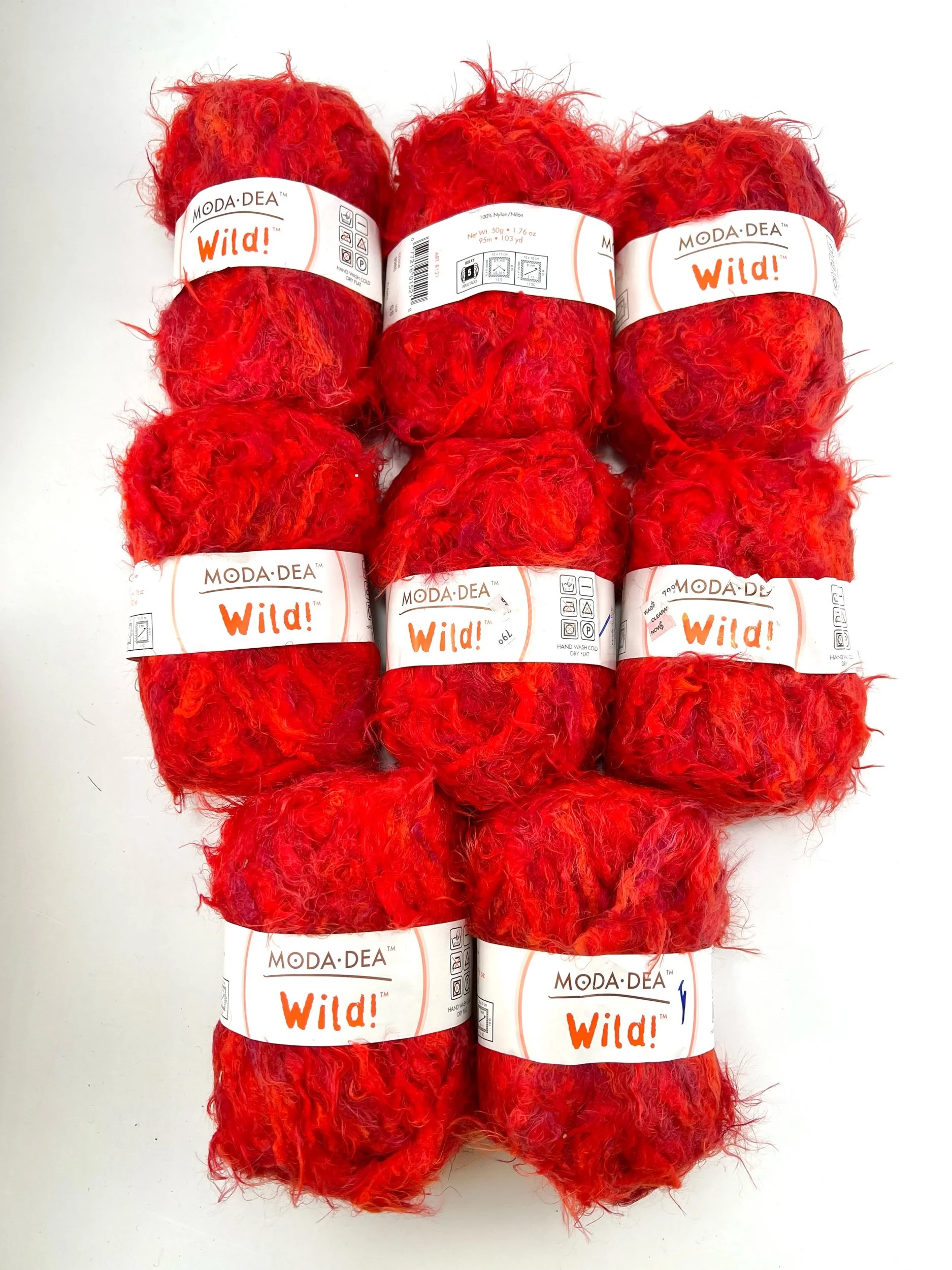 50 gram skeins, 68% polyester, 32% nylon