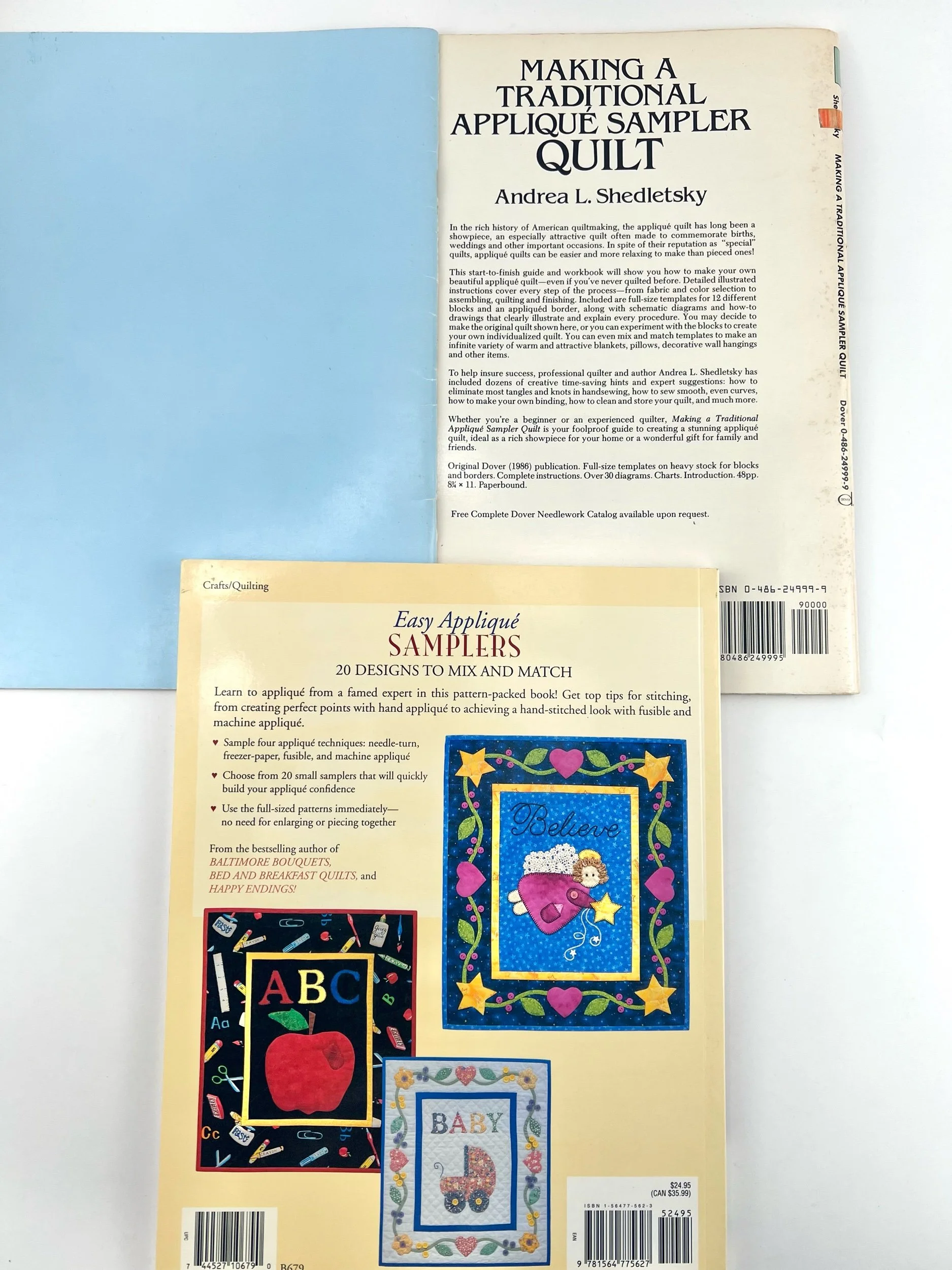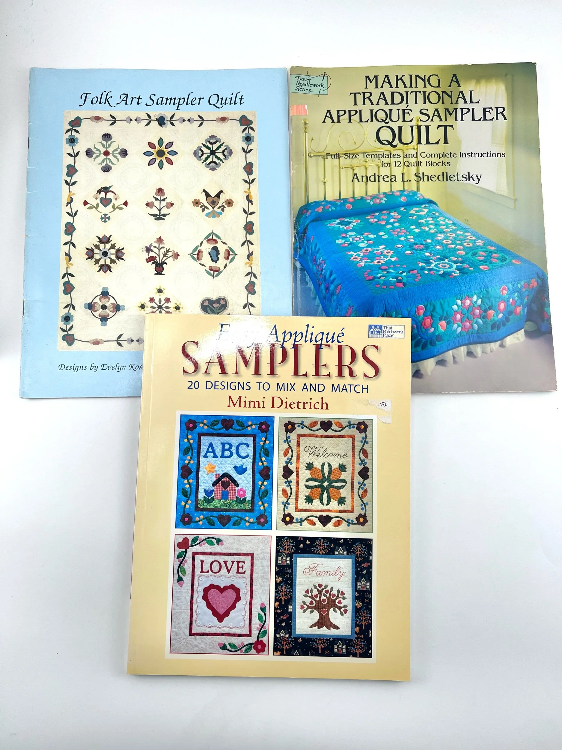 "Easy Applique Samplers", "Making a Traditional Applieque Sample Quilt", and "Folk Art Sampler Quilt"