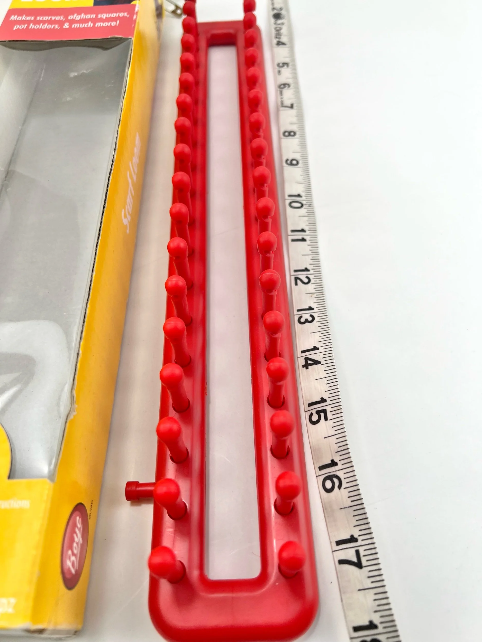 Shop › Boye Scarf Loom Image 1 of 3 Image 2 of 3 Image 3 of 3 Boye Scarf Loom $8.00 15" loom Add To Cart Added! 15" loom Ooh but look at these ones! Quick View Schmetz Universal 110/18 Sewing Machine Needles $5.00 Quick View Child's Display Mannequin $55.00 Quick View Klasse 90/14 Embroidery Sewing Machine Needles $5.00 Quick View Swanson’s Measuring Tape Keychain $5.00 Quick View Organ Superior Top Stitch 100/16 Sewing Machine Needles $5.00