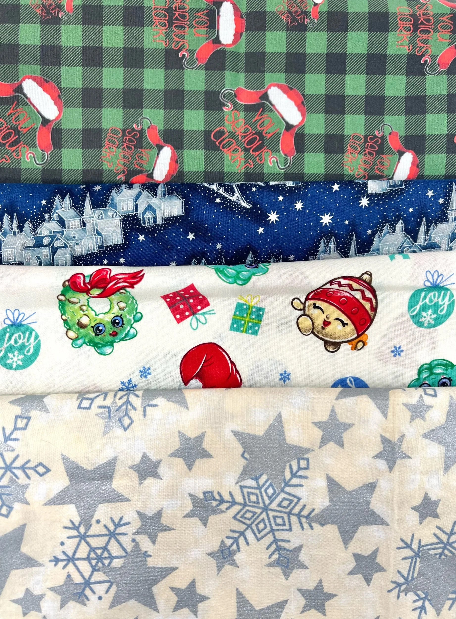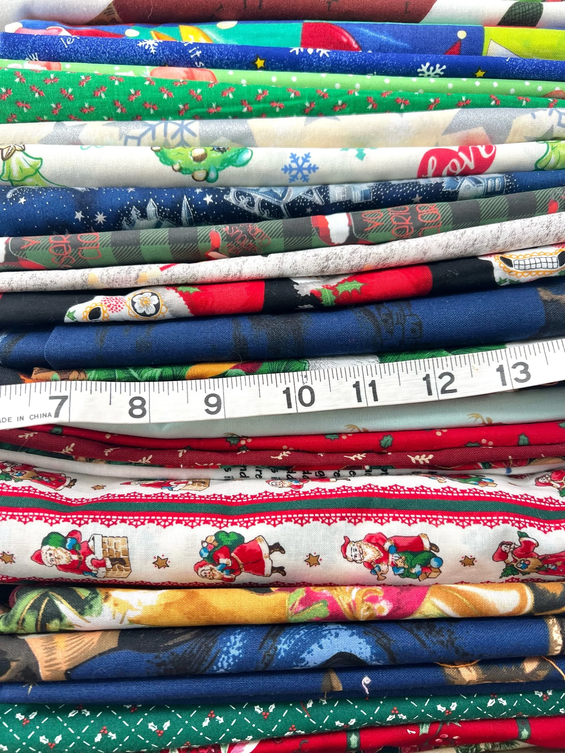 Roughly 14 pounds of Christmas quilting cottons in various styles!