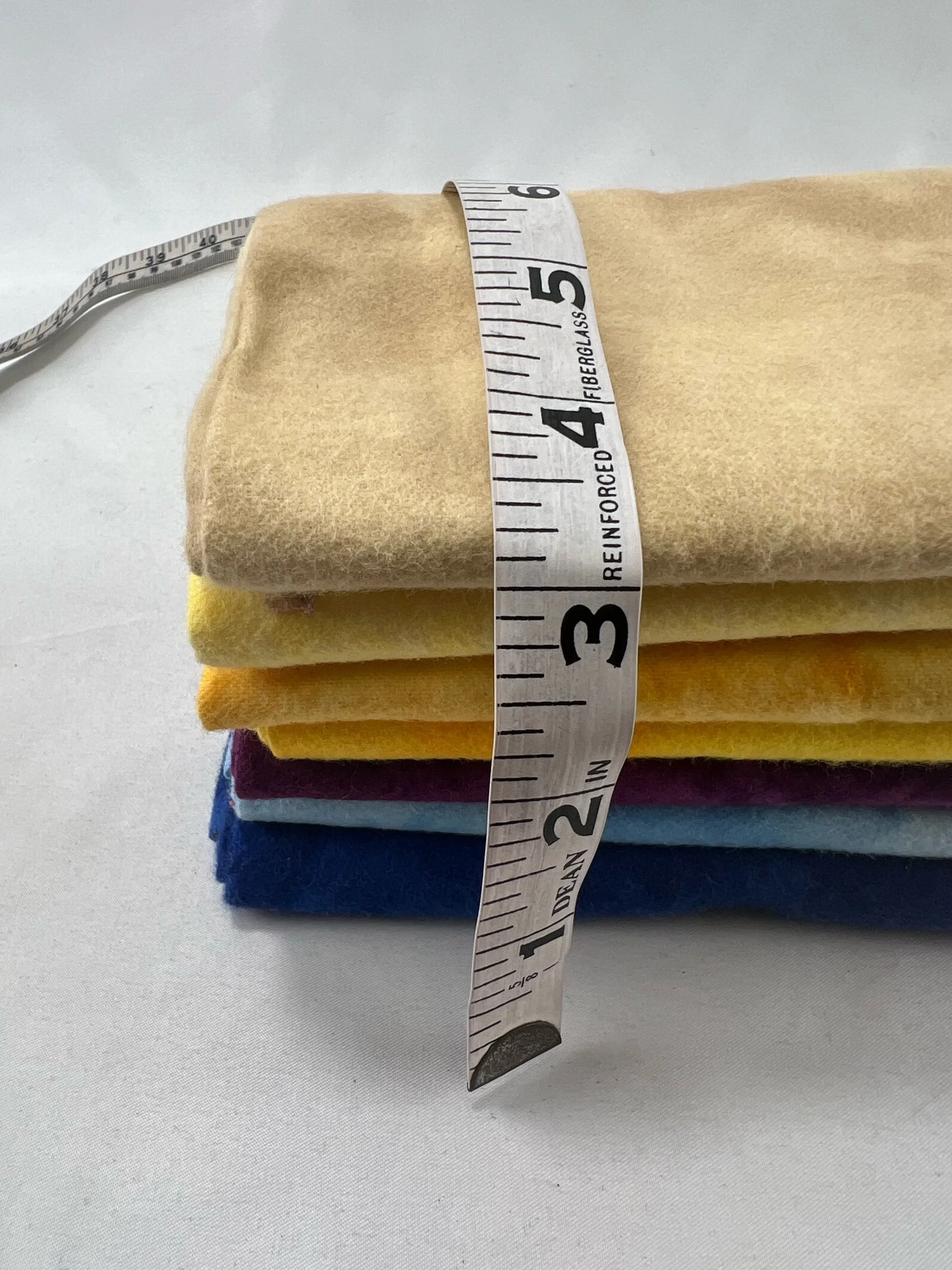 0.6lb total. Mostly smaller project pieces averaging around a yard or less. We love putting these together for you! We haven't measured them, and are offering them at a discount price based on their weights, instead 💪❤️