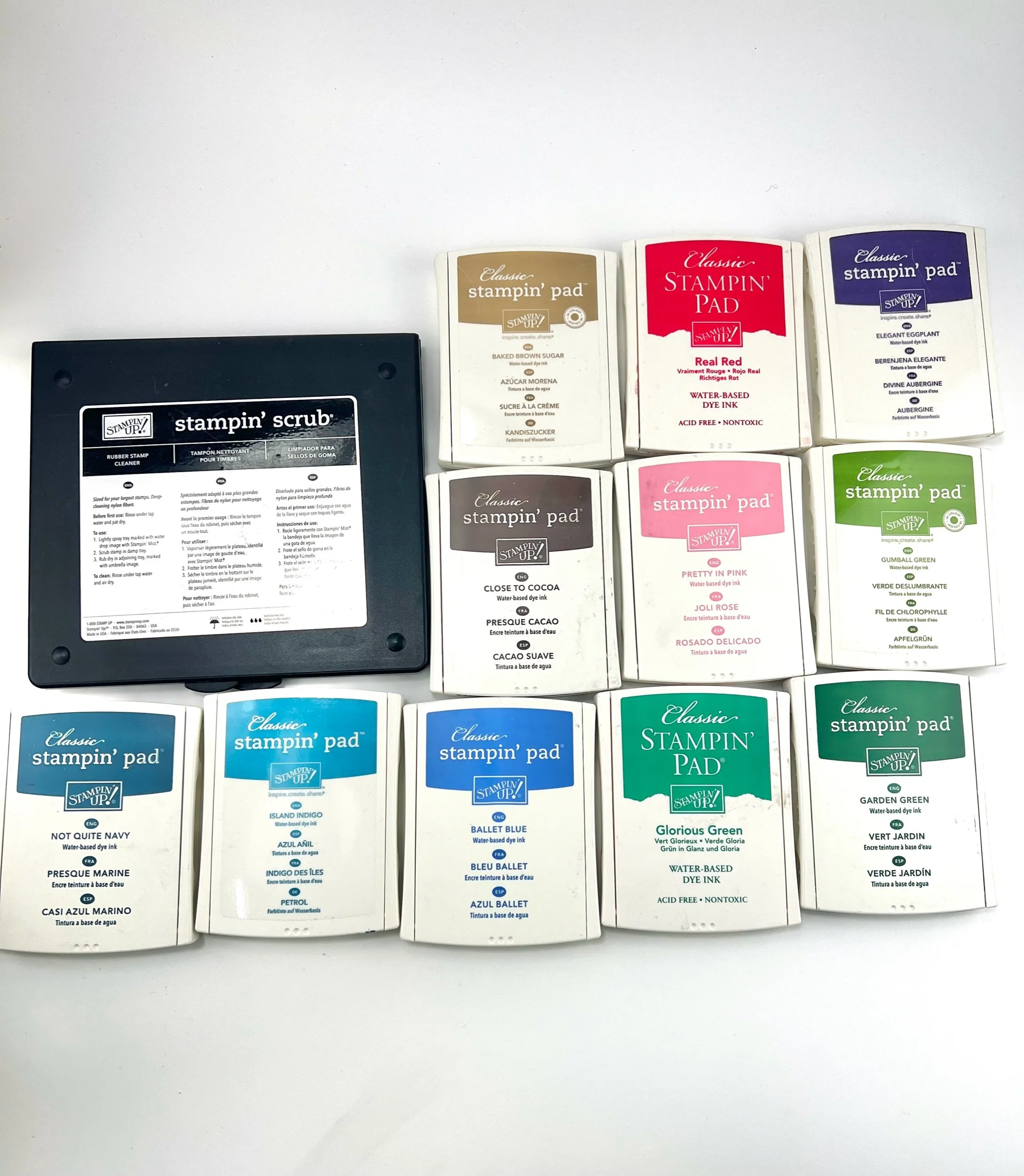 Shop › Ink Pads and Stamp Cleaner Image 1 of 2 Image 2 of 2 Ink Pads and Stamp Cleaner $20.00 Including 11 ink pads in a variety of colors and a "stampin' scrub" stamp cleaner Add To Cart Added! Including 11 ink pads in a variety of colors and a "stampin' scrub" stamp cleaner Ooh but look at these ones! Quick View Angel Stamp Collection $6.00 Quick View Holiday Stamp Collection $6.00 Quick View Alphabet Rubber Stamp Collection $15.00 Quick View Winter Theme Stamp Collection $10.00 Quick View "Happy Halloween" Stamp $5.00