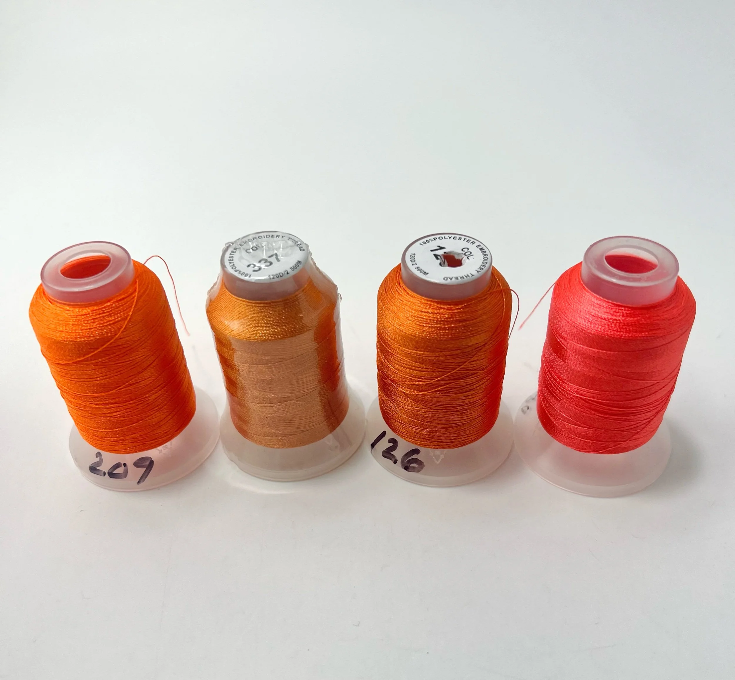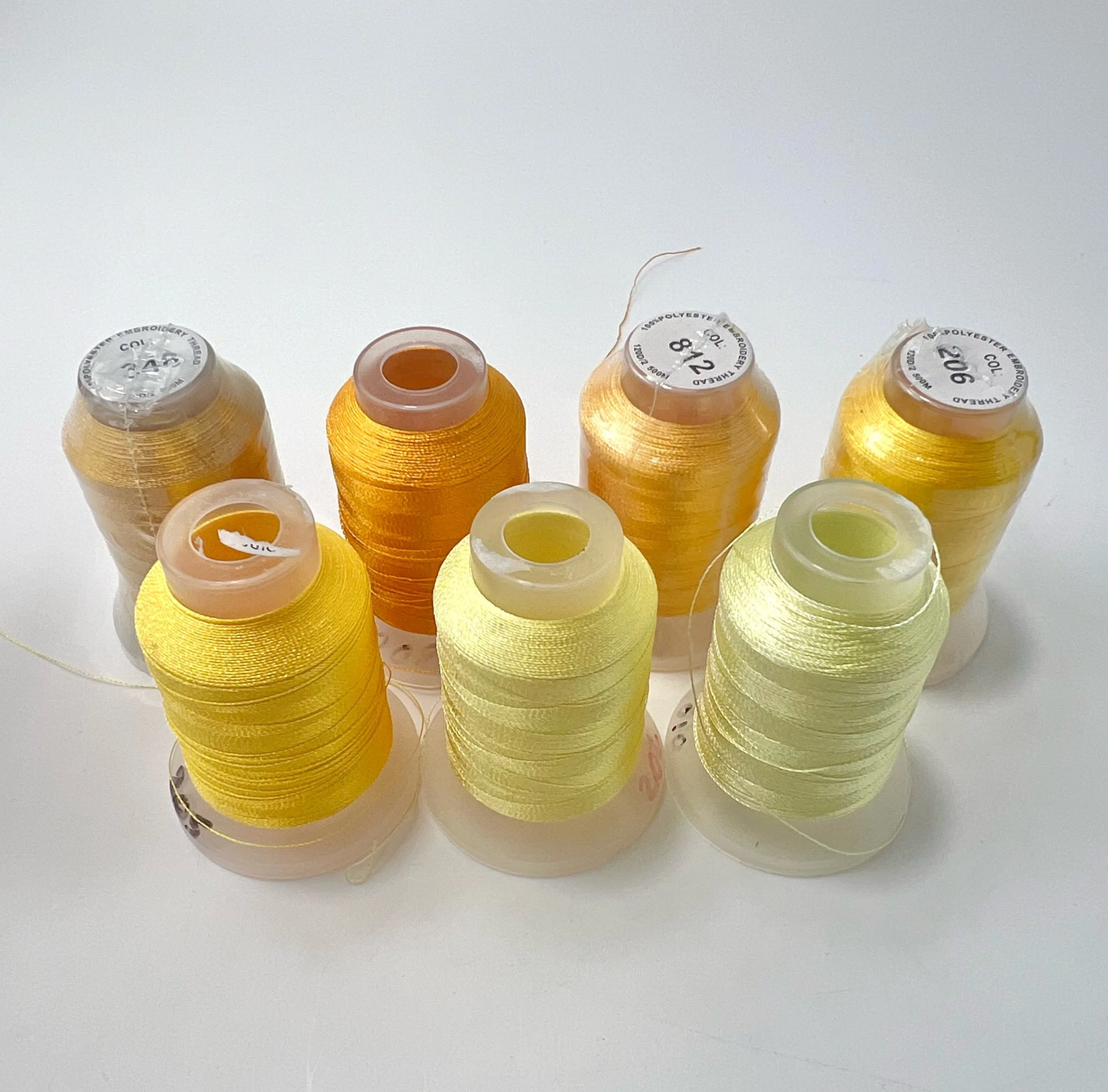 Shop › Poly Embroidery Thread Image 1 of 8 Image 2 of 8 Image 3 of 8 Image 4 of 8 Image 5 of 8 Image 6 of 8 Image 7 of 8 Image 8 of 8 Poly Embroidery Thread from $4.00 Shiny, strong, and colorfast polyester embroidery thread! Color: Select Color Red - 2 Spools Orange - 4 Spools Yellow - 7 Spools Green - 12 Spools Blue - 7 Spools Purple - 8 spools Pink - 6 Spools Neutrals - 9 Spools Add To Cart Added! Shiny, strong, and colorfast polyester embroidery thread! Ooh but look at these ones! Quick View Sulky Embroidery Thread Collection $183.75 Sold out Quick View Colorful Thread Collection $30.00