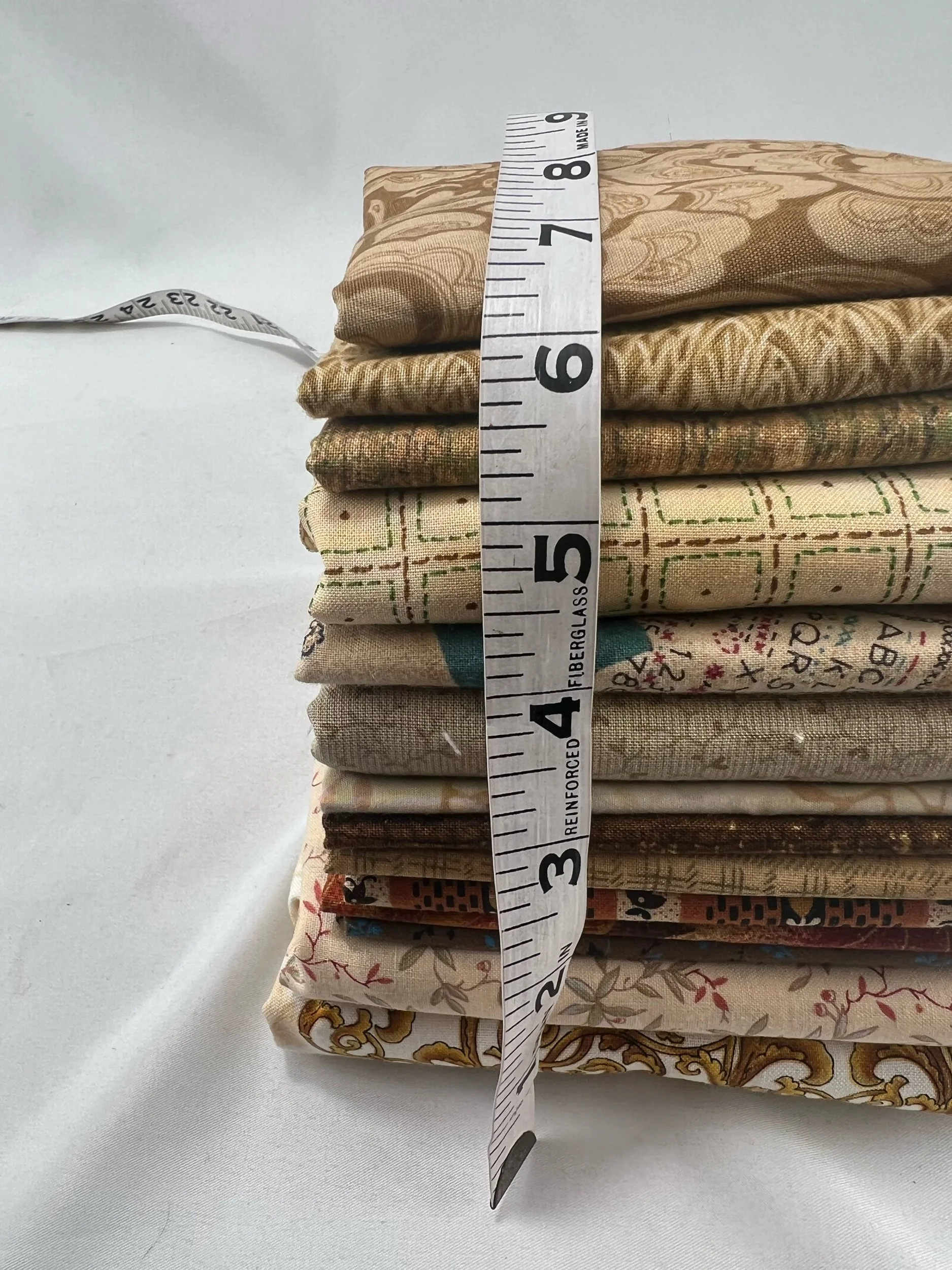 0.8lb total. Mostly smaller project pieces averaging around a yard or less. We love putting these together for you! We haven't measured them, and are offering them at a discount price based on their weights, instead 💪❤️