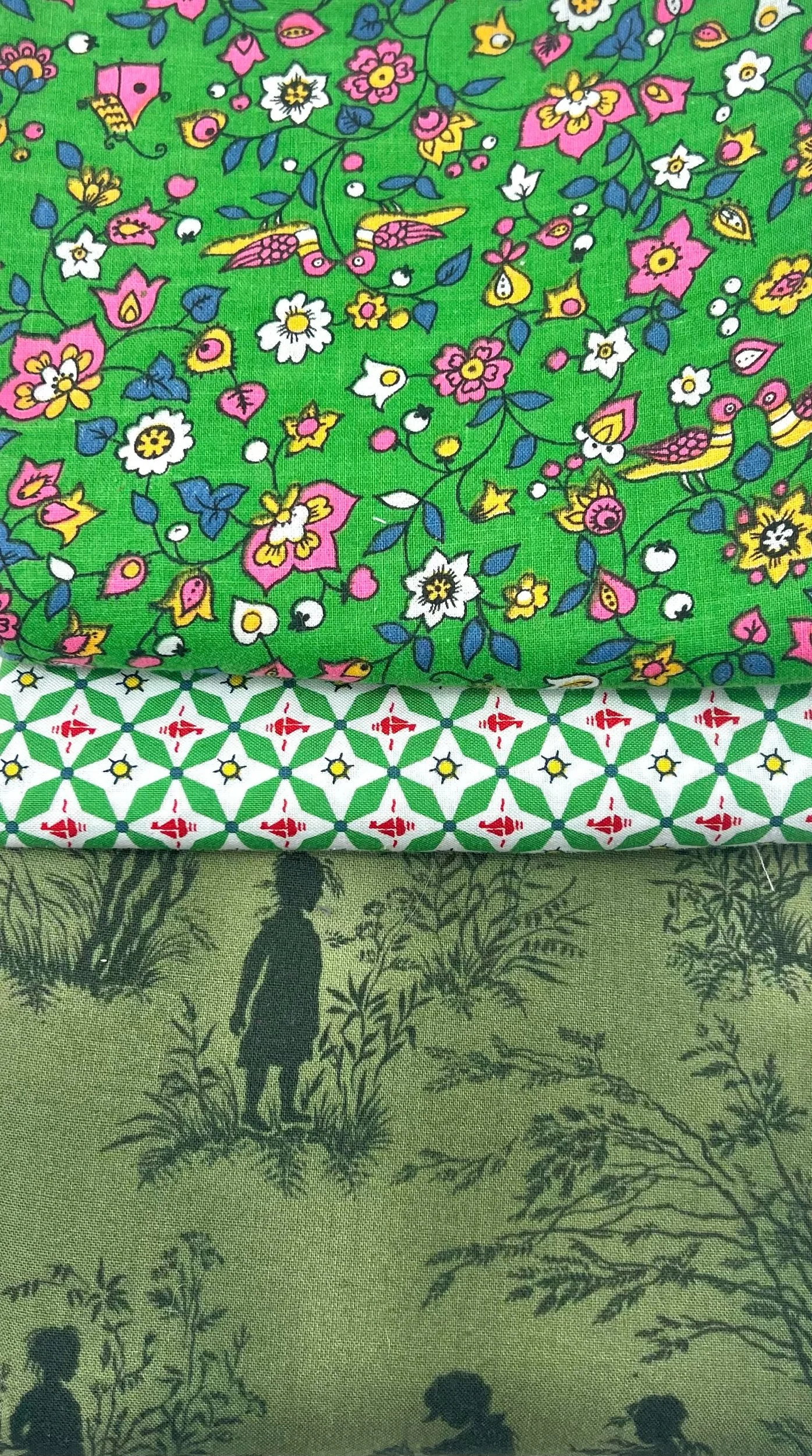 Lovingly assembled by us, and priced by weight. Use this bundle as a stash-builder, or as a quilt kit on its own! Our Quilting Cotton Bundles are made up of pieces ranging from “Swanson’s Fat Quarters” to longer yardages. What is a “Swanson’s Fat Quarter”? It is any piece of fabric that can easily be folded down into about the size of a folded fat quarter. So, it could be a fat quarter with a piece cut out, it could be a thin quarter, or it could be a half yard! No matter what, they are just about as useful as a trad fat quarter. Thanks for being a good home for this cute little family!